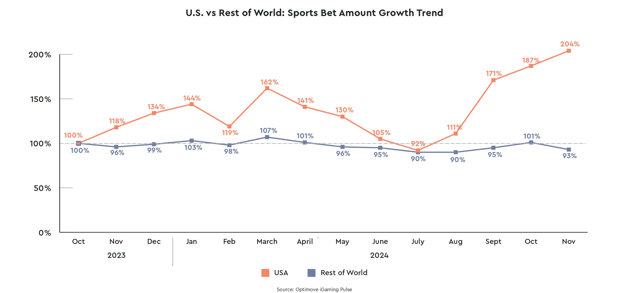 Optimove Insights Pulse report: US sports bettors growth surges to 187% in November