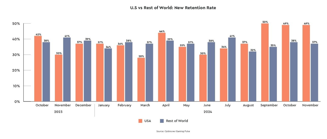 In this month's column, Optimove reveals US retention rates among new players surged to 49% in November, up 19% over last year