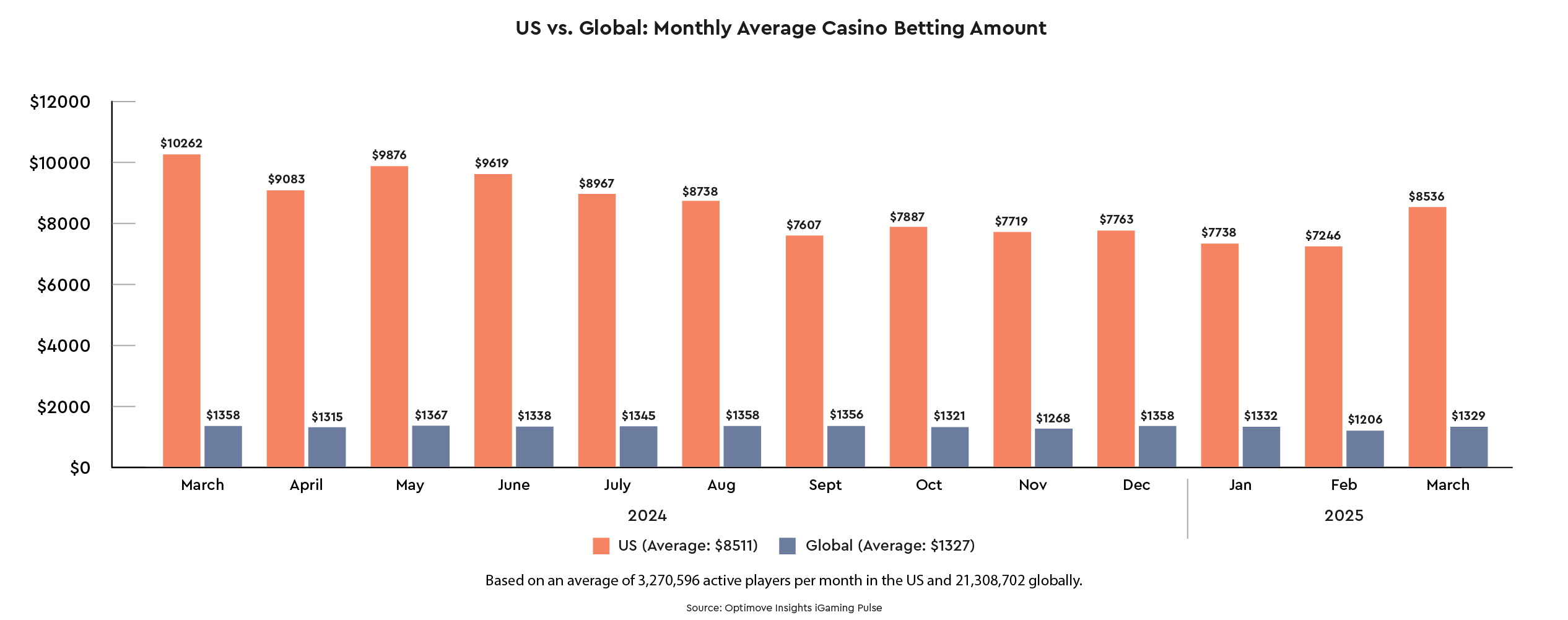 Optimove Insights: US icasino players bet 5.8x the global average in August